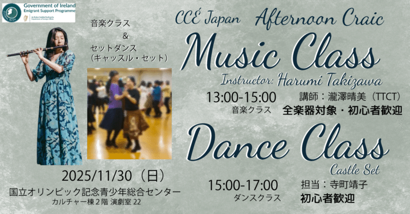 【Afternoon Craic】11/30(日) 音楽クラス/ダンス @オリセン