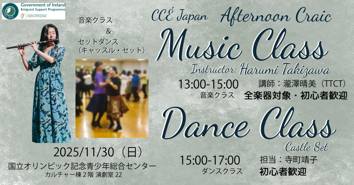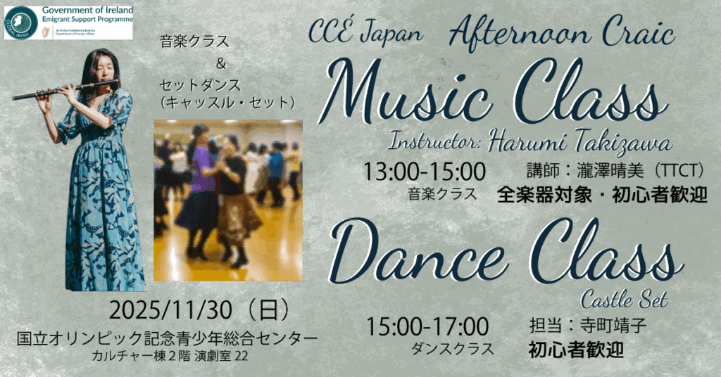 2025年11月30日(日)開催のAfternoon Craic(音楽/ダンスクラス)のご案内です。