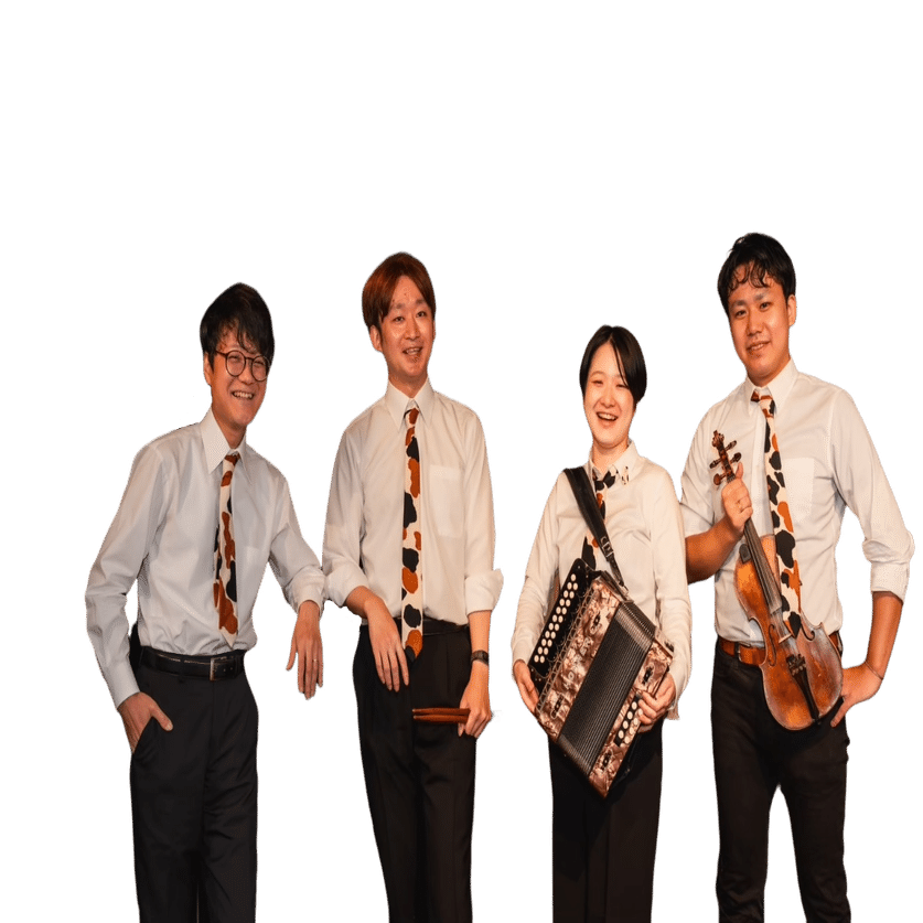 左より 青木海(Piano)堀尾健太郎(Drum)木村穂波(Button Accordion)福島開(Fiddle)