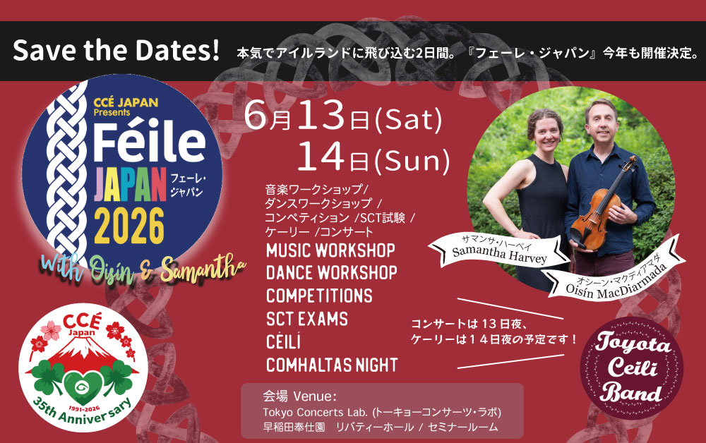Féile(フェーレ)とはアイルランド語で“お祭り”の意味で、CCÉ(アイルランド音楽家協会)本部公認のイベントです。