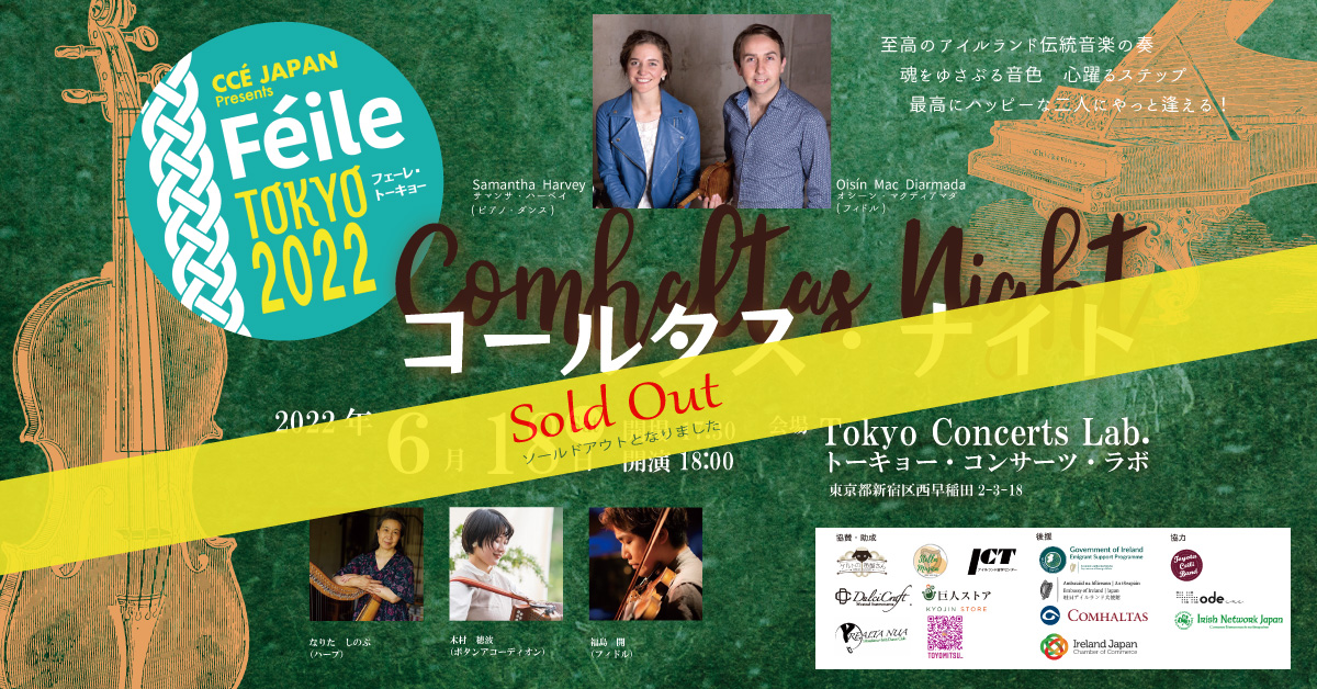 We have decided to hold Féile Tokyo at Tokyo Concerts Lab. from June 16 and 18, 2023. Oisín Mac Diarmada and Samantha Harvey will adjudicate our competitions (qualifiers may compete at Fleadh Mullingar). We will also organize music and dance workshops, SCT examinations, Comhaltas Night concert and céilí during the three-day event. Save the dates!
